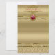 Faux Dark Ruby Red Gemstone Metallic Gold Damask Stationery