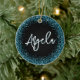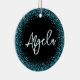 Faux Dark Teal Glitter Black Photo Ceramic Ornament