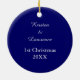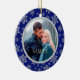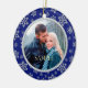 This is an especially elegant Christmas ornament featuring your photograph in a pretty frame of silver snowflakes on a blue background. The snowflake pattern frame has an inside faux diamond lining. The back of the ornament has your custom text in silver on a blue background; make it say whatever you'd like! An elegant and festive keepsake gift for newlyweds or any couple. *Please note - the image is printed and does not contain glitter or gems.*