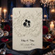 Express your gratitude with timeless elegance. This vintage-inspired design features a classic silhouette and ornamental flourishes for a sophisticated finish.This design captures the romance of a bygone era, featuring a central oval medallion enclosing a traditional silhouette of a bride and groom. The artwork creates a sophisticated trompe l'oeil effect, simulating the look of raised relief and debossed paper textures in soft ivory and cream tones, contrasted by crisp black ink. The composition is framed by symmetrical baroque scrollwork, rose clusters, and a pair of doves with outstretched wings, evoking a formal, nostalgic atmosphere.This is a flat printed image with a Faux Embossed effect, not actual raised material or pressed paper.