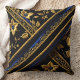 faux Embroidery Blue Gold Flowers black Throw Pillow