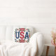 Show your patriotic pride with this pillow featuring a faux embroidered “USA” design with red, white, and blue flowers.