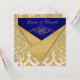 Plain white envelopes are included with paper invitations and will come to fit the invitation size you select. If you don’t need the envelopes, you may choose to not receive them by selecting the dropdown below "Envelopes" and choosing "None." If you’d like to have a design on your envelopes, you can browse all of these available envelopes to find the design that complements your Faux Flaps Blue Gold Damask Anniversary Invite.