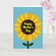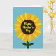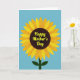 This card shows a large round flower filling the upper half of the design, set against a flat sky-blue background that feels calm and open. The petals glow in sunny yellow with a gentle shift into deeper golden-orange near the middle, like a warm hug shared between close family ❤️. In the dark, nearly black center circle, the words “Happy Mother’s Day” sit clearly in bright yellow lettering, arcing neatly to stay easy to read. Below, a simple dark green stem drops straight down, with one small leaf leaning to the side as if waving hello 🌼. The overall look is modern and graphic, with smooth shapes that keep the focus on the flower and its caring message. Strong contrast between the yellow petals and blue background makes the flower stand out, while the soft color transitions add a touch of depth without extra clutter. A single rounded leaf appears near the bottom, attached to the stem and angled slightly outward.