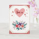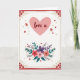 This design shows a bright white background framed by a rich red border, setting a cozy, affectionate tone ❤️. Near the top center sits a large, softly shaped blush-pink heart that feels like an inviting space for a sweet message. Inside the heart, the words “love u” appear in deep crimson lettering, centered and easy to spot. Along the bottom, a full bouquet spreads outward with coral, fuchsia, and deep purple flowers nestled among teal-green leaves and small pink berry clusters, like a gift offered with a shy smile. A thin dashed gold line runs just inside the border, adding a gentle glow that makes the layout feel cared for. Small gold flourishes and tiny corner flower groupings in pinks and reds decorate the edges, giving the scene a friendly, close-to-the-heart look 🌼. Across the white space, little red hearts and scattered gold dots are sprinkled like confetti around the main heart and above the bouquet.
