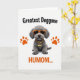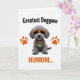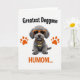 Designed with a stylized, fluffy gray dog centered on a bright white background, the scene feels like a sweet shout-out to a favorite “pet parent” ❤️. The pup sits upright with a calm, self-assured look, as if posing for someone it adores just off frame. Tangerine-orange sunglasses add a cool, friendly edge, while a leopard-pattern collar with a shiny gold bone charm hints at affectionate spoiling. High, even lighting keeps everything airy and focused on the dog’s soft texture and the crisp graphic accents. On both sides of the pup, orange paw prints sit in a balanced arrangement, echoing the sunglasses color and adding a gentle, companionable rhythm 🌼. The message is arranged around the figure, with black text paired with orange emphasis, reading “Greatest Doggone HUMOM...” in a clear, easy-to-read style. The orange paw prints appear to the left and right of the dog, evenly spaced against the white backdrop.