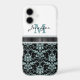 Faux Glitter Aqua Damask Monogram Case-Mate iPhone Case