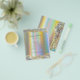 The glitter and foil elements are simulated in the artwork by the Creator. These elements will not be used in the making of this product.