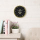 Elegant black monotones vintage floral damasks background with white glitter and gold nautical anchor and numbers in the same glitter. Gold tones trim. Cool bling wall clock. Design is all images and not any kind of metallic finish. If you need any help customizing any of my designs, contact ArtOnWear designer. Free text formatting with live help available by request.