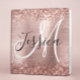 The pink blush glitter and foil graphics are created with a printed photo effect.