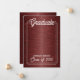 Unique and trendy congratulations graduate announcement and celebration party invitation card, with a classic dark burgundy wine red and black colored gradient colored background. With room to customize or personalize with a photo, the name of the graduate, class graduation year, high school, future college or university name, and celebration party event information. Let the family, friends and neighbors know there is a happy graduate ready to conquer the world, and invite everybody to come celebrate the happy event with you!