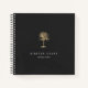Chic personalized spiral notebook for your salon or hairstyling business features two lines of custom text in classic white lettering, on a rich charcoal grey background adorned with a tropical palm tree illustration in faux gold foil. Personalize with your name or salon name, or your choice of custom text.