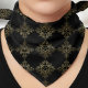Seamless decorative pattern featuring faux gold ornaments on a black background.