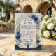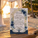 Set the tone for an enchanted evening with this elegant reception detail insert. Featuring romantic swans and deep navy florals for a sophisticated fairytale.This design features a sophisticated composition beginning with a printed white marble background texture overlaid with an ornate, faux gold foil filigree arch. The upper frame is adorned with watercolor roses in shades of navy, slate, and dusty blue, accented by sage green eucalyptus leaves. At the base, a pair of white swans floats on a digital illustration of water, reflecting a celestial night sky sprinkled with printed gold glitter dust. The typography blends an elegant calligraphy script header with traditional serif body text in a formal layout. This is a flat printed image with a faux gold foil and glitter effect; it does not contain actual raised metal, foil, or glitter.