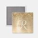 Faux Gold Brushed Metal Glitter Monogram Name Magnet