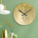 Easily personalize this trendy chic round clock design featuring pretty gold sparkling glitter on a gold brushed metallic background.