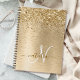 Faux Gold Brushed Metal Glitter Print Monogram Nam Notebook