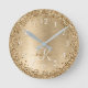 Easily personalize this trendy chic wall clock design featuring pretty gold sparkling glitter on a gold brushed metallic background.