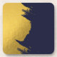Faux Gold Brushstrokes with Navy Blue Background Beverage Coaster