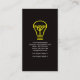 A dark cover accentuated by a faux gold light bulb at the top and a grey power plug at the bottom. Your prestigious name and job title is at the top of the card while contact details are southwards towards the base.