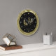 Elegant black monotones vintage floral background with white glitter and gold 2 chickens illustration and numbers in the same glitter. Gold tones trim. Cool bling wall clock. Design is all images and not any kind of metallic finish. If you need any help customizing any of my designs, contact ArtOnWear designer. Free text formatting with live help available by request.