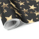 Faux Gold Christmas Stars Pattern Add Text Black Wrapping Paper