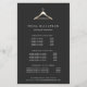 Elegant flyer design displays your services or price list beautifully. Perfect for tailors, seamstresses, personal shoppers, dry cleaners and more, this chic design features classic white lettering on a rich charcoal gray background adorned with faux gold foil clothes hanger illustration. Includes three customizable headings and body text fields, and space for your business contact information along the bottom. To adjust layout, enter your text and then use the Customize function to change positioning and font sizes.