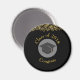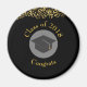 A magnet which says: Class of 20xx. Designed with fake gold confetti glitter. Set on a black background. Illustrated with a black graduation cap with a semi-transparent circle behind. Elegant and chic.