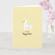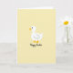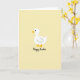 At the center of the card is a simple white bird with a round body, a tiny black dot eye, and a thin black line hinting at a wing, giving it a sweet, friendly look. Its orange beak and matching webbed feet add a bright accent that feels like a gentle hello. The bird sits against a wide, pale lemon-yellow background that reads like early spring light, with a calm, airy mood 🌷. The little creature’s soft gaze and relaxed stance suggest a tender, companionable moment, like it’s quietly keeping someone company. Below the illustration, the words “Happy Easter” appear near the bottom, written in flowing black lettering that balances the open space above. The text is centered and sized to feel noticeable without crowding the bird 🐰. The overall layout stays minimal, with lots of yellow space framing the white figure and drawing attention to the orange details. The pale yellow field is uniform from edge to edge, with the black lettering sitting just under the bird’s feet.