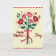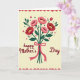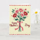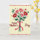 On the front of the card a stylized bouquet takes center stage on a creamy yellow background, with flowers in deep crimson and soft rosy pink that lean toward each other like close friends. Each bloom has a sunny yellow center, while dark green stems and gently curved leaves weave together in a way that feels caring and connected ❤️. A slender pink ribbon wraps the stems and ties into a neat bow, with the tails flowing downward to add soft movement. Small pink florets and a few dark green dots float around the bouquet like confetti, adding a light, affectionate touch 🌼. Along the top and bottom edges, scalloped borders in a deeper red-pink shade frame the scene with a classic decorative look. The words “happy Mother’s Day” sit around the bouquet in flowing lettering, colored deep maroon to match the floral tones. The maroon text curves near the bouquet, with the scalloped red-pink bands running straight across the upper and lower edges.