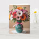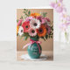 This design shows a full bouquet of daisy-like flowers arranged to feel like a gentle hug, with petals in orange, pink, red, and white circling dark centers. The blooms lean toward one another as if sharing a quiet, friendly closeness, with a few sprigs of green leaves tucked between them ❤️. They sit in a rounded teal ceramic vase, and a soft pink ribbon is tied around the neck in a tidy bow. On the front of the vase, the message “Happy Mother’s Day” appears in flowing lettering, set in a darker ink that stands out against the teal. The background is a muted beige, keeping the focus on the flowers and giving the scene a calm, cozy mood 🌼. Gentle, diffused light softens the petals and adds a mild shine to the vase. A white lace doily rests beneath the vase, its delicate pattern visible around the base.