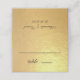 A wedding place card for black and gold wedding colors. It is just black lines and calligraphy on faux gold foil. The names of the bride and groom and the wedding date are on the back.