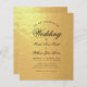 A budget wedding invitation with black text on faux gold foil background. The word Wedding and the names are written in an elegant calligraphic script.