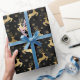 Faux Gold Foil Christmas Reindeer & Black bokeh Wrapping Paper