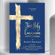 Faux gold foil cross on blue | First Communion Invitation