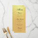 A faux gold foil menu that uses elegant calligraphic script for title and subtitles. All text is black. Recommended for a wedding with black and gold wedding colors, but it can be used on other occasions.