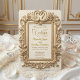 Announce your formal union with regal elegance. This vintage-inspired design features ornate acanthus scrolls and romantic swans in a warm, luxurious palette.This design features a sophisticated "old world" aesthetic, utilizing a warm metallic gold hue to simulate the look of gilded foil against a soft, creamy ivory background. The composition is anchored by an ornate Rococo frame filled with scrolling acanthus leaves and carved floral roses, leading the eye to a central heart crest formed by two symmetrical swans. The typography blends flowing handwritten calligraphy with a traditional serif font for a timeless look.This is a flat printed image with a faux embossed foil effect, not actual raised material or metallic leaf.