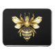 Gold, jewelry, polygonal bee with golden sparkling wings on black background. Polygonal style animal.Golden bee.