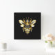 Faux Gold Foil Logo Bee Polygonal on Black Square Wall Clock