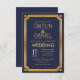 Faux Gold Foil Navy Blue Elegant Script Wedding Invitation