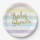 Faux Gold Foil, Pastel Rainbow Stripes Baby Shower Paper Plates