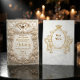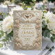 Announce your black-tie union with timeless elegance. This traditional design features ornate scrollwork and a regal crest for a sophisticated first impression.