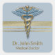 Faux Gold Foil Stripes Medical Caduceus Light Blue Square Sticker