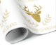 This wrapping paper features a beautiful image of fake golden foil textured deer head shape with some tree branches. There is also a customizable text area that now reads "Merry Christmas". Notice: The foil texture is not real. It is a printed image mimicking the look of golden foil.