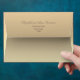 Elevate your wedding invitations with this luxurious 5x7 faux gold foil envelope. Adorned with an ornate Art Deco floral frame and a romantic rope heart design inside, it exudes elegance and sophistication. The return address on the top flap adds a chic finishing touch, making it the perfect complement to your special day.