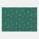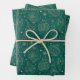 Faux Gold Foil Xmas Tree Decoration Pattern Green Wrapping Paper Sheets
