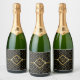 FAUX Gold Geometric Pattern with Monogram on BLACK Sparkling Wine Label