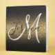 Customize the calligraphy font style, size and color of the black and white personalized monogram.