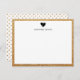 Personalized note card with a faux gold glitter border and a small black heart. Customize with your name. The back of the flat note cards features a gold and white polka dot pattern.