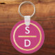 Faux Gold Glitter Circle Vertical Monogram on Pink Keychain